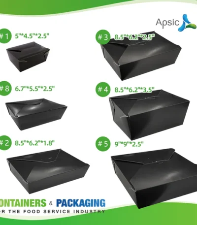 #1 Black Microwavable Folded Paper Take Out Container (5″ x 4.25″ x 2.5″) – 1 case (450 piece)
