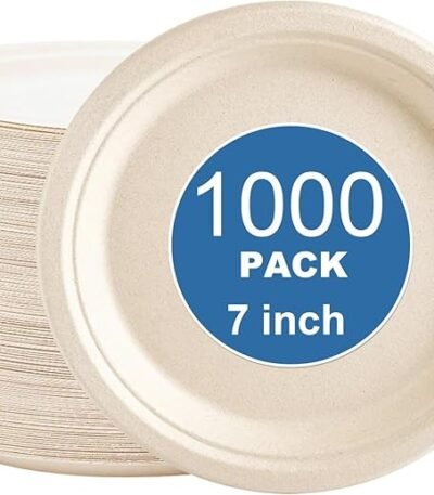 1000-Count 7 Inch Compostable Paper Plates, Heavy Duty Bagasse Disposable Plates, White Sugarcane Plates, PFAS-Free, Ideal for Desserts, Cake, Snacks & Light Meals)