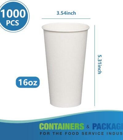 16oz 1000 Hot Paper Cups for Hot Chocolate/Coffee/Juice/Tea – White