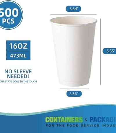 16 oz White 500 Disposable Double Wall Insulated Hot Paper Cups