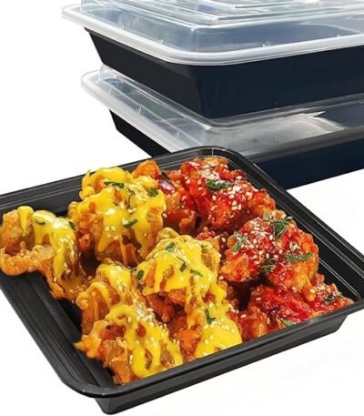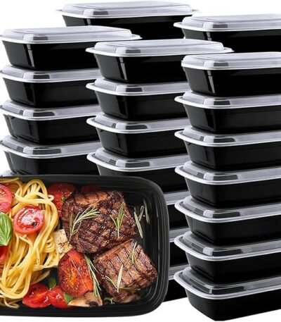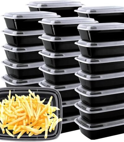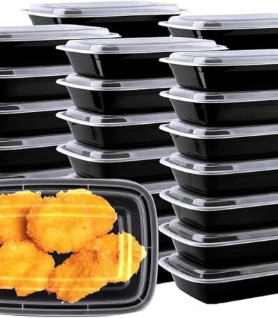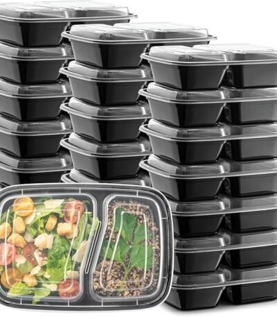 150 Pack – 28oz 2-Compartment Disposable Containers with Leakproof Lids, BPA Free Microwave/Dishwasher/Freezer Safe