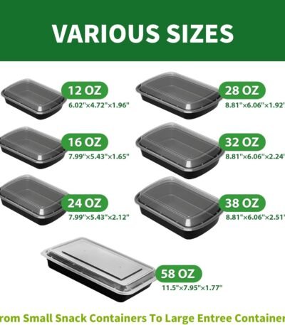 58oz (120-Piece) Disposable Take Out Food Storage Containers with Leakproof Lids, BPA Free, Microwave/Dishwasher/Freezer Safe