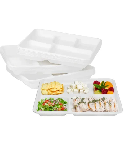 COMPOSTABLE DINNER TRAY 5 COMP 10.43″*8.46″ PFAS FREE 500PCS/CTN