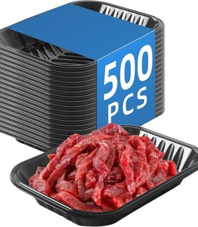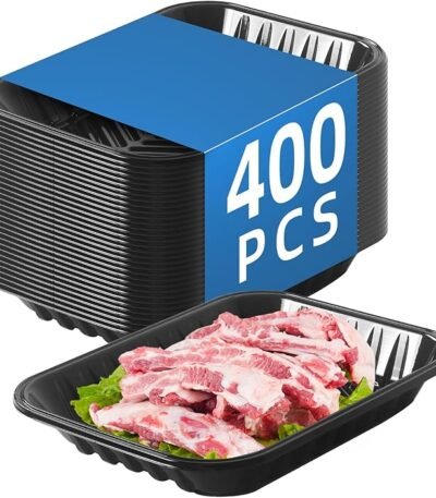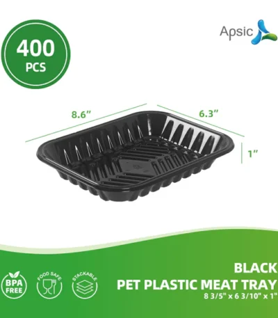 Black PET Plastic Meat Tray 8 3/5″ x 6 3/10″ x 1″, 400PCS, Suitable for Supermarkets Food Service