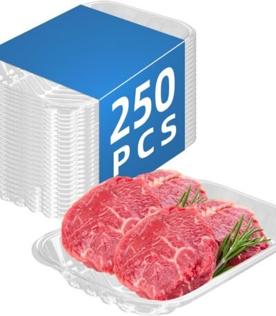 Clear PET Plastic Meat Tray 10 9/10″ X 6″ X 1 1/10″, 250PCS, Perfect for Meat, Seafood & Fruit Display