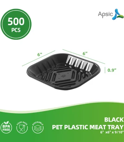 Black PET Plastic Meat Tray 6″ x6″ x 9/10″, 500PCS, Great for Retail & Takeout Packaging