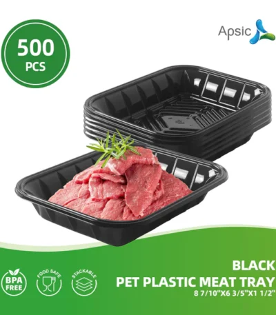 Black PET Plastic Meat Tray 8 5/16″ X 4 1/2″ X 2/5″, 1000PCS, Perfect for Meat, Seafood & Fruit Display