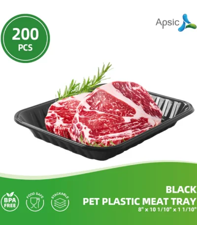 Black PET Plastic Meat Tray 8″ x 10 1/10″ x 1 1/10″, 200PCS, Great for Retail & Takeout Packaging