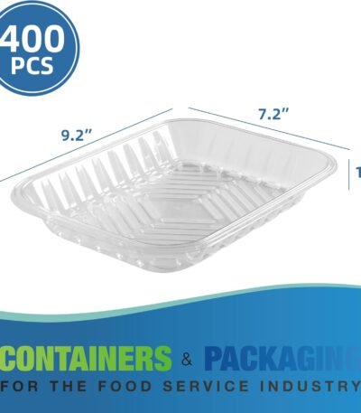 Clear PET Plastic Meat Tray 9 1/5″ X 7 1/5″ X 1 1/5″, 400PCS, Great for Retail & Takeout Packaging