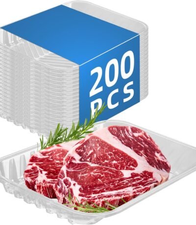 Clear PET Plastic Meat Tray 8″ X 10 1/10″ X 1 1/10″, 200PCS, Perfect for Meat, Seafood & Fruit Display