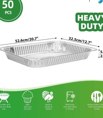 Heavy Duty Full Size Deep Steam Table Foil Pans – 50 Ct