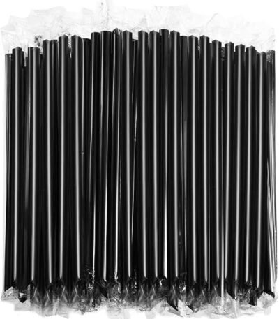 8″ x 0.47″ Wide Black Plastic Boba Straws,Disposable Straws for Milkshakes, Smoothies, Iced Coffee & Cold Drinks,(Case of 2400)