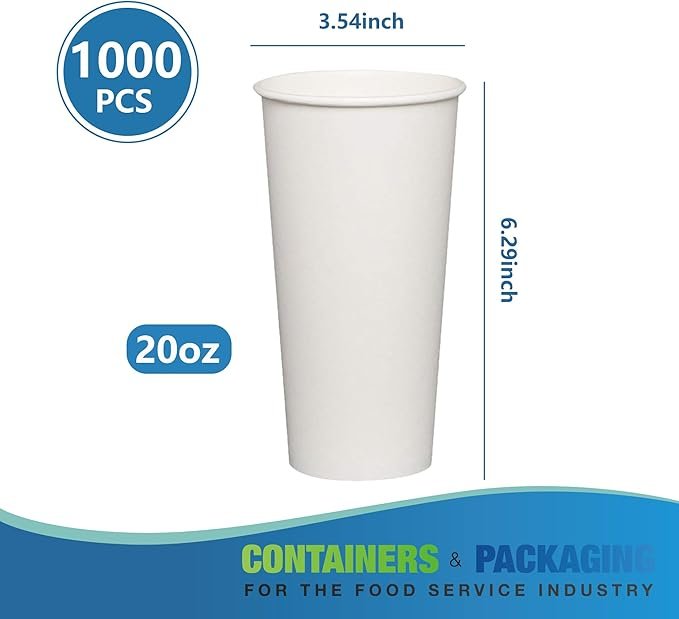 20oz 1000 Hot Paper Cups for Hot Chocolate/Coffee/Juice/Tea – Whit