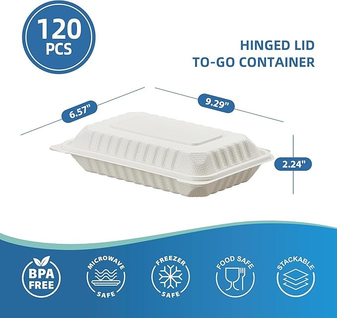 120 Pack Hinged To Go Food Containers, 9.3"x6.6"x3" Clamshell Take Out Food Containers with Lids,