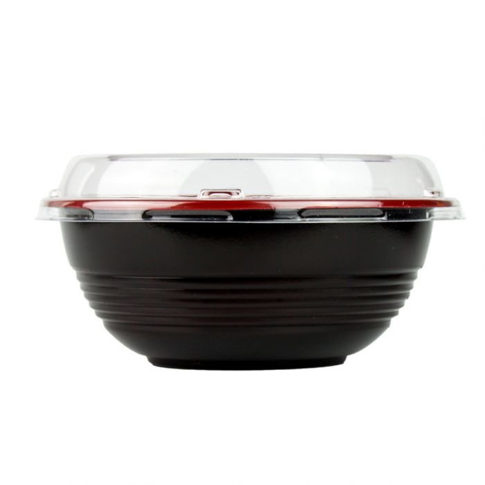 16 oz Black and Red Microwavable Plastic Bowl With Clear Lid Combo – 1 case (300 set)