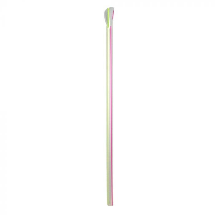 9″ Giant (8mm) Clear Striped Film-Wrapped Plastic Spoon Straw – 1 case (2000 piece)