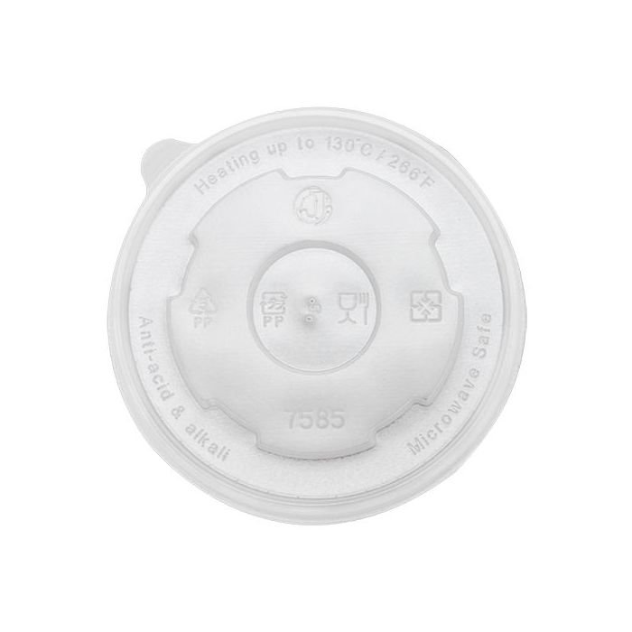 Karat high quality PP plastic flat lids are designed to be compatible with Karat and Yocup’s paper hot & cold food containers. They are constructed with a small pin hole for ventellation of hot foods such as soups, they also feature a small pull tab for easy removal from the container. The flat lid is ideal for takeout customers to help prevent foods from spilling.